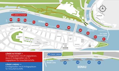 Die Stadtwerke Passau verfügen über 17 Anlegestellen für die Schifffahrt – die Zahl der Liegeplätze liegt bei insgesamt 29.
